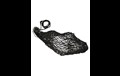 Feed your horses easily with this deluxe hay net from Gatsby. This slow feed hay net allows for less waste and encourages slower consumption. It has a large ring at the base for strength and a ring at the top, both rings are nickel plated. Made with Challenger poly hay cord. Hanging Cord 45", Hay Net Length 32", Hole Size: 1.5" x 1.5". Gatsby Style Number 710047.