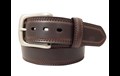 Dress up your look with this men’s belt from Danbury. This belt is made with top grain leather with feathered, double tonal stitched edges and matching leather loop. The end has 7 point end holes and a dull silver finished buckle that is removable. Danbury Style Number 5548500.